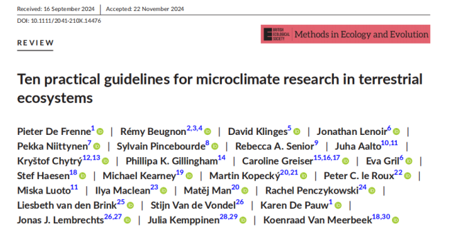 原文题目:Ten practical guidelines for microclimate research in terrestrial ecosystems