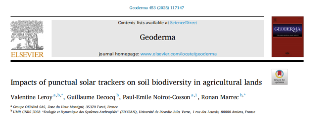 原文题目:Impacts of punctual solar trackers on soil biodiversity in agricultural lands